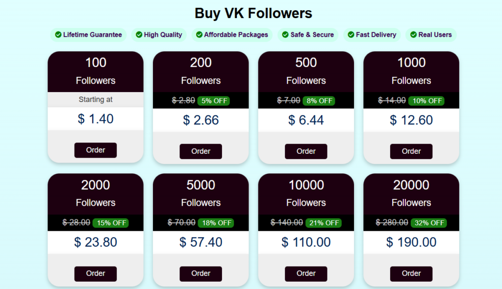 GetAFollower is quite a simple platform for buying followers in VK and serves users who want provision easily. Until 2026, the platform would still show fast delivery and varied package options. The typical end-user for GetAFollower would include small businesses, musicians, and community pages that needed some quick profile boosts. Engagement would be slight, but it does a great job at inflating follower numbers used solely for social proof. For optimal outcomes, users should curb the need to overbuy followers and instead focus on slow growth backed up by genuine audience interaction.