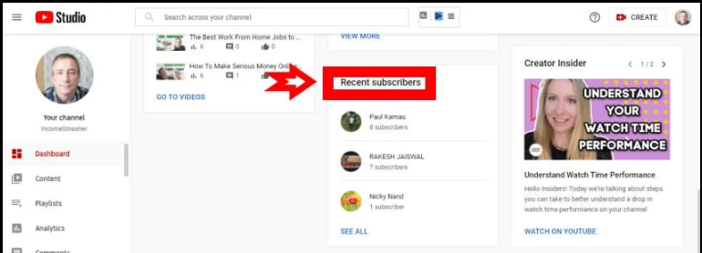 • Find the Recent Subscribers section by scrolling to who are displayed.